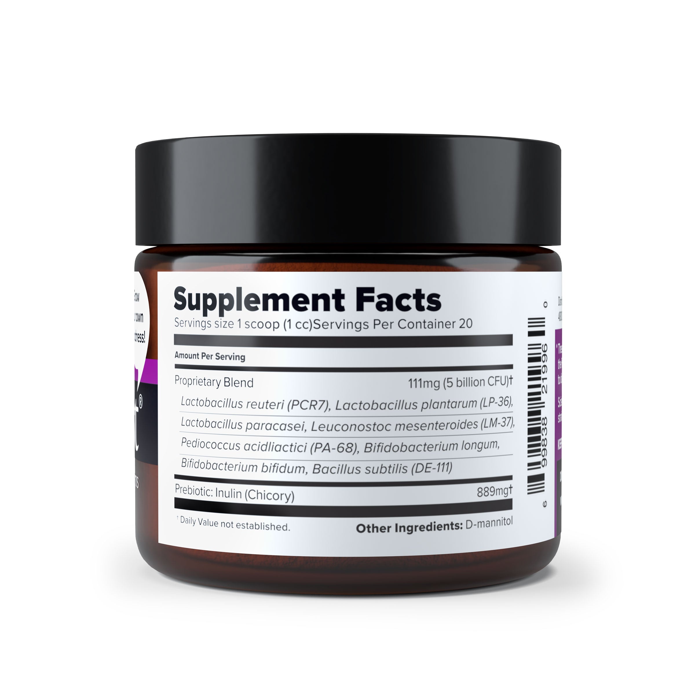 The unique eight-strain formula was designed to tackle the growing problem of sugar addiction and its impact on the microbiome. The formula takes sugar head-on by converting glucose and fructose in the gut to the powerful free radical scavenger, mannitol. Mannitol is the most abundant sugar in nature. The formula includes three keystone strains that are proprietary to us and work in harmony with the other five strains to form a stable, sustainable community. This allows the gut microbiome to sequester heavy metals, produce short chain fatty acids, recycle iron, and copper, and produce more energy. This formula reduces Gram negative bacteria and their harmful endotoxins and produces anti-inflammatory substances like glutathione and melatonin.